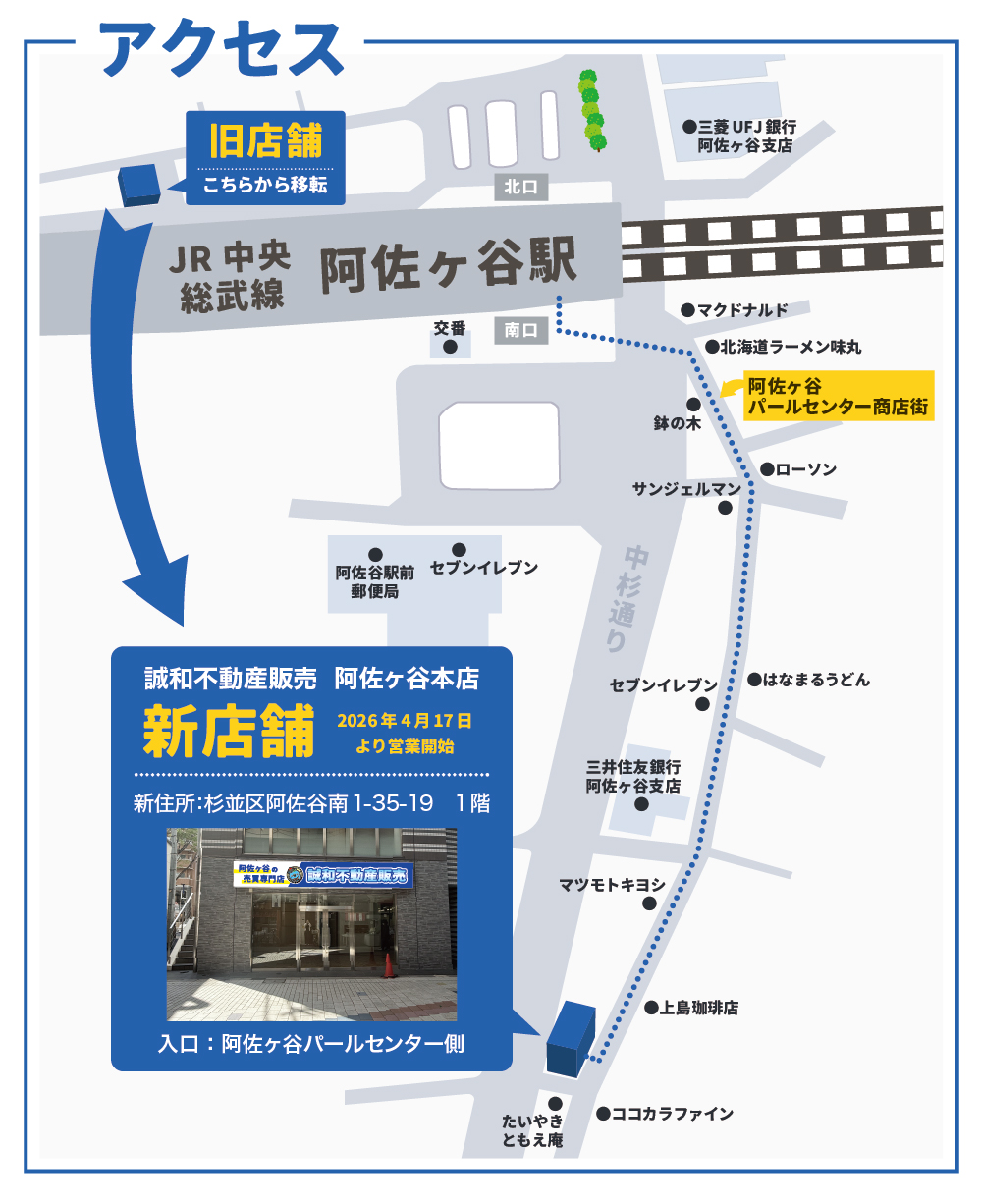 さて、このたび 誠和不動産販売 阿佐ヶ谷本店 は、下記に移転することとなりました。